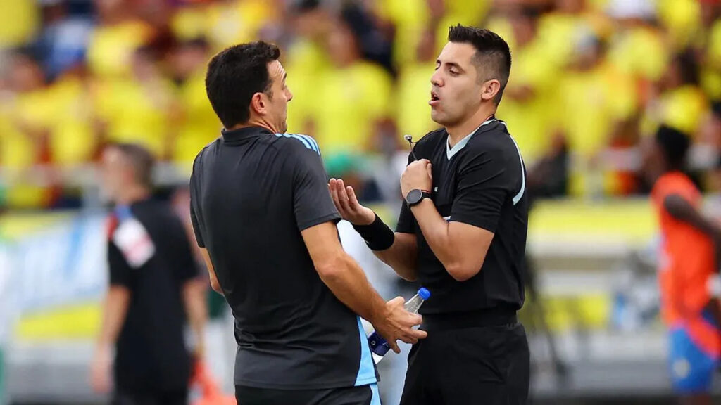 ম্যাচ শেষে সংবাদ সম্মেলনে রেফারির ওপর ক্ষোভ প্রকাশ করেন আলবিসেলেস্তেদের প্রধান কোচ। ফুটবলারদের পারফরম্যান্সের প্রশংসা করার পাশাপাশি পেনাল্টির সিদ্ধান্তে নিয়ে রাগান্বিত হন স্কালোনি। মূলত, ১-১ সমতা থাকা অবস্থায় ম্যাচের ৬০তম মিনিটে বক্সের ভেতর দানিয়েল মুনোজকে ফাউল করে বসেন নিকোলাস ওটামেন্ডি। প্রথমে রেফারি সেটি এড়িয়ে গেলেও এরপর সময় নিয়ে ভিএআরে চেকে সিদ্ধান্ত বদলে পেনাল্টি দেন। আর সেখান থেকেই জয়সূচক গোলটি করে হামেস রদ্রিগেজ আর্জেন্টিনাকে প্রায় ভুলতে বসা হারের তেতো স্বাদ দেয়।