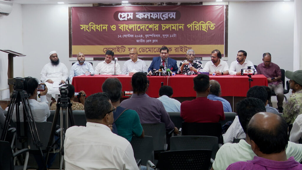অন্তর্বর্তীকালীন সরকারের কাছে নতুন করে সংবিধান প্রণয়নসহ তিন দফা দাবি জানিয়েছে সোসাইটি ফর ডেমোক্রেটিক রাইটস। বৃহস্পতিবার (১২ সেপ্টেম্বর) দুপুরে জাতীয় প্রেসক্লাবে আয়োজিত এক সংবাদ সম্মেলনে এ দাবি জানানো হয়।