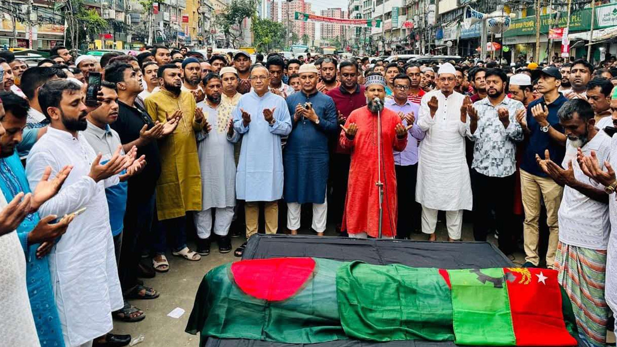 বৈষম্যবিরোধী আন্দোলন চলাকালে পুলিশের গুলিতে নিহত যুবদল কর্মী নয়ন মিয়ার (২৬) জানাজা অনুষ্ঠিত হয়েছে। শনিবার (২১ সেপ্টেম্বর) আসরের নামাজের পর রাজধানীর নয়াপল্টনে বিএনপির কেন্দ্রীয় কার্যালয়ের সামনে এ জানাজা অনুষ্ঠিত হয়।