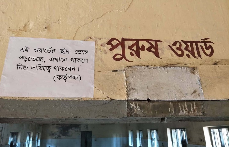 হাসপাতাল ভবনের দ্বিতীয় তলায় মহিলা ও পুরুষ ওয়ার্ডের প্রবেশমুখে এভাবে বেশ কিছু দিন ধরে এই নোটিশ ঝুলানো আছে। আর সেখানেই ‘নিজ দায়িত্বে’ ভর্তি আছেন রোগীরা! যে কোনো সময় বড় ধরনের দুর্ঘটনার ঝুঁকি নিয়েই তাদেরকে সেখানে থাকতে হচ্ছে। অথচ বিষয়টি দেখার যেন কেউ নেই।
