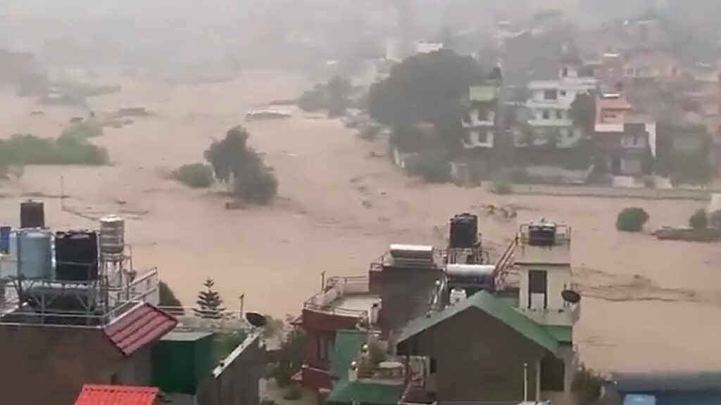 দেশটির রাজধানী কাঠমান্ডুর কাছে বাগমতি নদী এবং তার উপনদীগুলোর পানি বিপৎসীমার উপর দিয়ে প্রবাহিত হচ্ছে। কোথাও কোথাও দু’কূল ছাপিয়ে লোকালয়ে ঢুকে পড়েছে পানি। এতে ভেসে গিয়েছে রাস্তাঘাট, ঘরবাড়ি এবং গাড়ি।