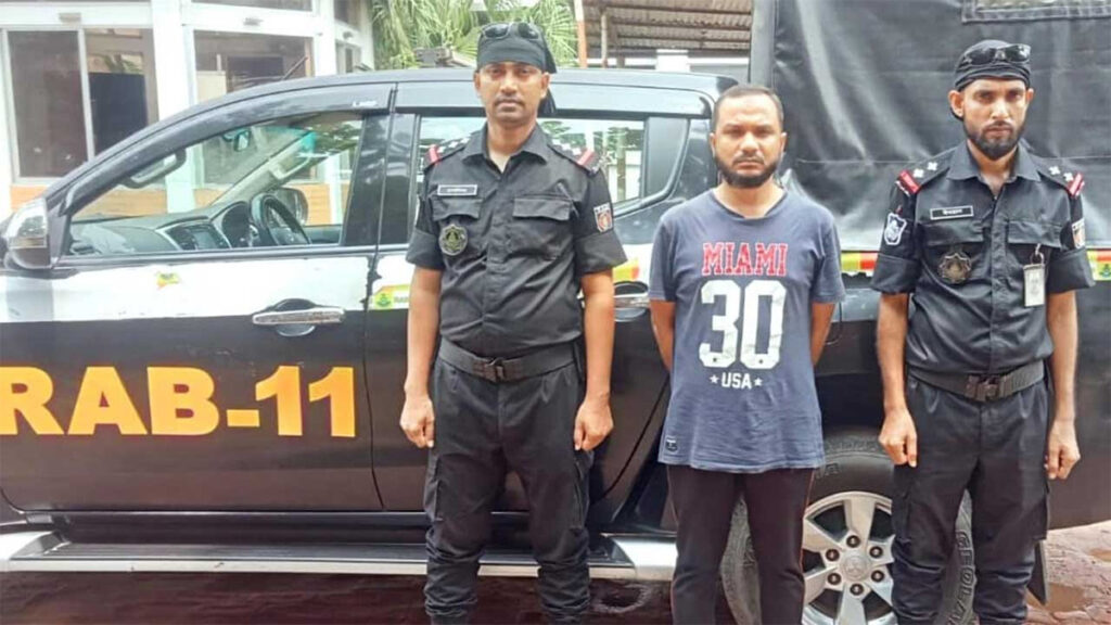 আজ সোমবার (৩০ সেপ্টেম্বর) দিবাগত রাতে নারায়ণগঞ্জের সিদ্ধিরগঞ্জ থানাধীন চিটাগাংরোড এলাকা থেকে তাকে গ্রেফ্তার করা হয়। গ্রেফতার ‘জামাই মামুন’ বরিশালের সদর থানার চরমোনাই এলাকার আব্দুর রহিমের ছেলে।
