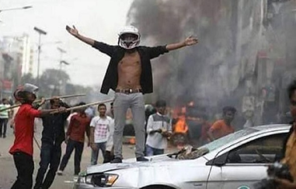 পুলিশের গাড়ি ভাঙচুরকারী সেই হেলমেটধারী আটক
