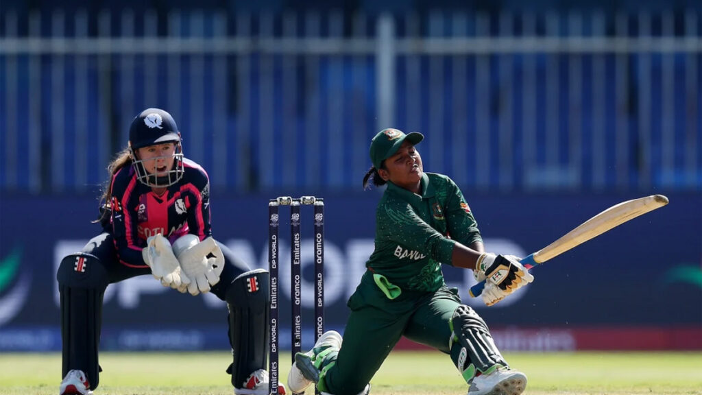 আইসিসি নারী টি-টোয়েন্টি বিশ্বকাপের নবম আসরের উদ্বোধনী ম্যাচে আগে ব্যাট করে স্কটল্যান্ডকে ১২০ রানের টার্গেট দিয়েছে বাংলাদেশ। দলের পক্ষে সর্বোচ্চ ৩৬ রান করেন শোভনা মোস্তারি। এছাড়া সাথী রানী ও অধিনায়ক নিগার সুলতানা জ্যোতির ব্যাট থেকে আসে যথাক্রমে ২৯ ও ১৮ রান।