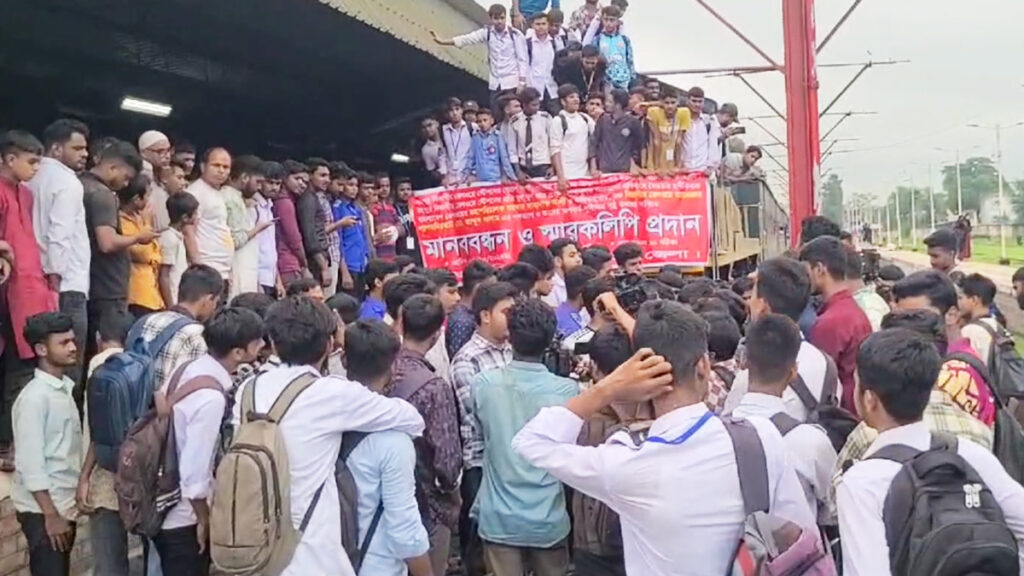 রোববার (৬ অক্টোবর) সকাল ১১টা থেকে ১২টা পর্যন্ত রংপুর রেলওয়ে স্টেশনে বুড়িমারি থেকে ছেড়ে আসা পার্বতীপুরগামী ৪৬১ নম্বর এলআর ট্রেন অবরোধ করে রাখে তারা। এসময় ট্রেনের সামনে ও প্লাটফর্মে অবস্থান নিয়ে সংস্কারের জন্য বিভিন্নধরণের শ্লোগান দেন শিক্ষার্থীরা।