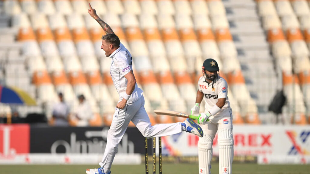 জ্যাক লিচের বলে লেগ বিফোরের ফাঁদে পড়ে ৬৩ রানে শেষ হয় সালমানের ইনিংস। এর মধ্যেই ফিফটি তুলে নেন জামাল, একবার জীবনও পান তিনি। এদিকে শাহিন আফ্রিদিকেও ১০ রানে বিদায় করেন লিচ। নাসিম শাহ এসে ছক্কায় ঝরের ইঙ্গিত দিলে তাকেও ফিরিয়ে দলকে জয়ের স্বাদ পাইয়ে দেন লিচ। পাকিস্তানের দ্বিতীয় ইনিংস ধ্বসিয়ে দিতে বড় ভূমিকা রাখেন লিচ। মাত্র ৬.৫ ওভার হাত ঘুরিয়ে তুলে নেন ৪ উইকেট। ২টি করে উইকেট নেন ব্র্যাডন কার্স ও গাস অ্যাটকিনসন। ১টি উইকেট নেন ক্রিস ওকস।