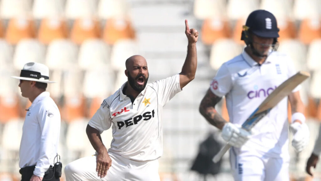 বৃহস্পতিবার (১৭ অক্টোবর) মুলতান ক্রিকেট স্টেডিয়ামে ৬ উইকেটে ২৩৯ রান নিয়ে তৃতীয় দিনের খেলা শুরু করে ইংল্যান্ড। দিনের ষষ্ঠ ওভারে ব্রাইডন কার্সকে (২৯ বলে ৪) সউদ শাকিলের ক্যাচ বানিয়ে ফাইফার পূর্ণ করেন সাজিদ। এটি টেস্ট ক্যারিয়ারে সাজিদের দ্বিতীয় ফাইফার। এরপর ম্যাথিউ পটস (১০ বলে ৬) ও ইংল্যান্ডের শেষ উইকেট শোয়েব বশিরকেও (১৯ বলে ৯) তুলে নেন সাজিদ। ২৬.২ ওভার বল করে ১১১ রান খরচায় ৭ উইকেট নেন ডানহাতি স্পিনার।