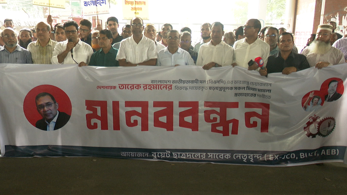 বিএনপির ভারপ্রাপ্ত চেয়ারম্যান তারেক রহমানের নামে থাকা মিথ্যা মামলা প্রত্যাহার করে দেশে ফেরার সুযোগ দিতে মানববন্ধন করেছেন বুয়েট ছাত্রদলের সাবেক নেতারা।