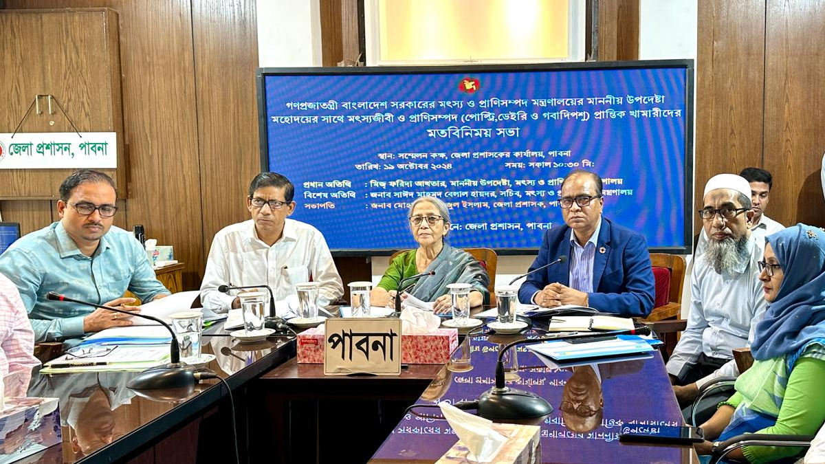 শনিবার (১৯ অক্টোবর) দুপুরে পাবনা জেলা প্রশাসকের কার্যালয়ে পাবনা জেলার মৎস্যজীবী ও প্রান্তিক খামারীদের সাথে মতবিনিময় সভায় প্রধান অতিথির বক্তৃতায় তিনি একথা বলেন।