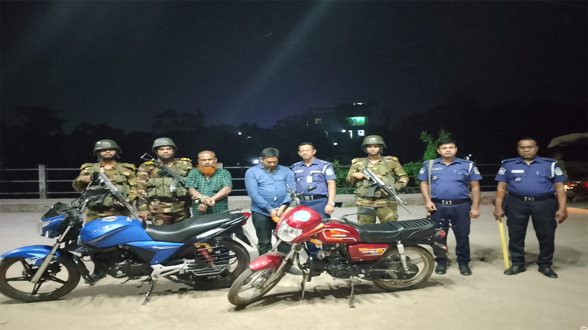 নেত্রকোণায় গোয়েন্দা পুলিশ (ডিবি) পরিচয়ে যাত্রীবাহী বাস থামিয়ে ডাকাতির চেষ্টাকালে দুই ব্যক্তিকে আটক করেছে সেনাবাহিনী। এসময় ডাকাতির কাজে ব্যবহৃত দুটি মোটরসাইকেল জব্দ করা হয়।