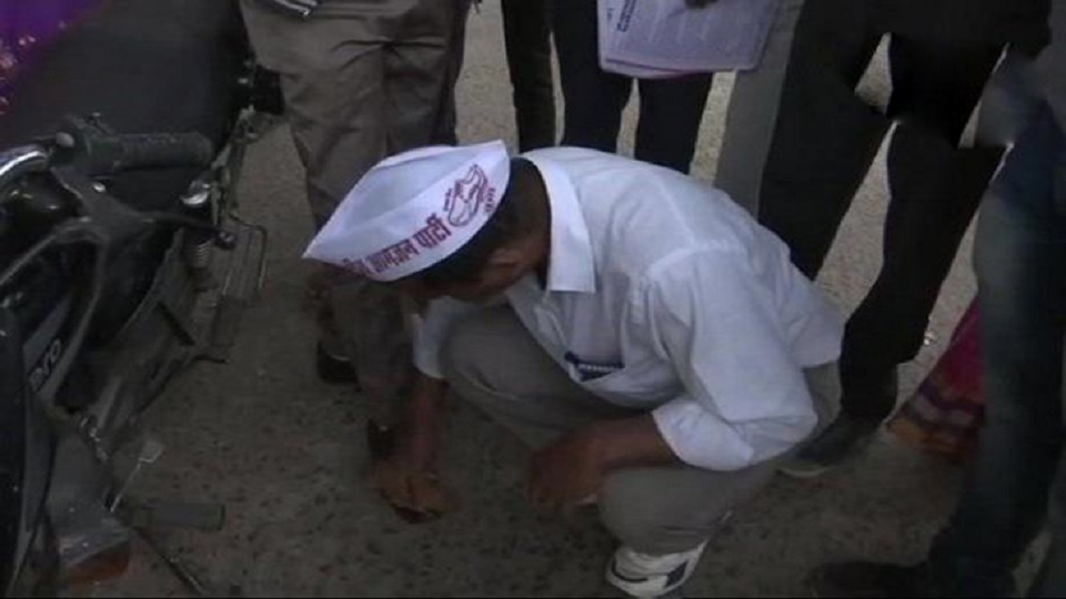 মধ্যপ্রদেশের নির্বাচন উপলক্ষে বেশ কয়েকজন ভোটারের জুতা পলিশ করে দিয়েছেন তিনি।