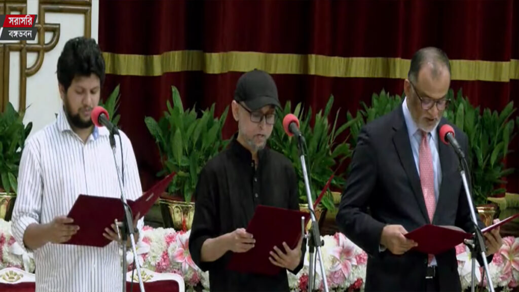 শপথ নেয়া উপদেষ্টারা হলেন, ব্যবসায়ী ও আকিজ-বশির গ্রুপের এমডি সেখ বশির উদ্দিন, চলচ্চিত্র পরিচালক মোস্তফা সরয়ার ফারুকী ও প্রধান উপদেষ্টার বিশেষ সহকারী মাহফুজ আলম।