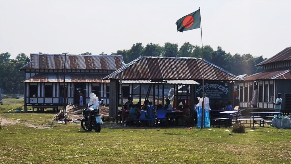 দোচালা টিনের রান্না ঘরের সামনে তিন সারিতে চলছিল তিনটি শ্রেণির পাঠদান। ৩৬ জন শিক্ষার্থীকে পাঠদান করছিলেন দুইজন শিক্ষক। কাঠফাটা রোদ আর ভ্যাপসা গরমের অস্বস্তি তো আছেই, এর ওপর একসঙ্গে তিন শ্রেণির পাঠদান চলায় শিক্ষক-শিক্ষার্থী কেউ কারও কথা ঠিকভাবে শুনতে পারছিল না। বুধবার ( ১৩ নভেম্বর) দুপুরে শরীয়তপুরের জাজিরা উপজেলার পূর্ব নাওডোবা ইউনিয়নে পদ্মা সেতু অধিগ্রহণকৃত সরকারি জমিতে ৫২ নং পাইনপাড়া সরকারি প্রাথমিক বিদ্যালয় গিয়ে এমন চিত্র দেখা গেল।