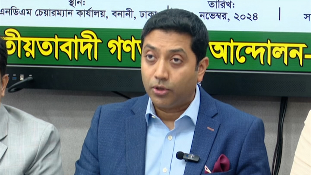 ভবিষ্যতে ফ্যাসিস্টের উত্থান ঠেকাতে ক্ষমতা বিকেন্দ্রীকরণের ওপর জোর দেন এনডিএম চেয়ারম্যান। সংবিধানের যেকোনো ধারাকে সংশোধনযোগ্য করার দাবিও জানান তিনি।