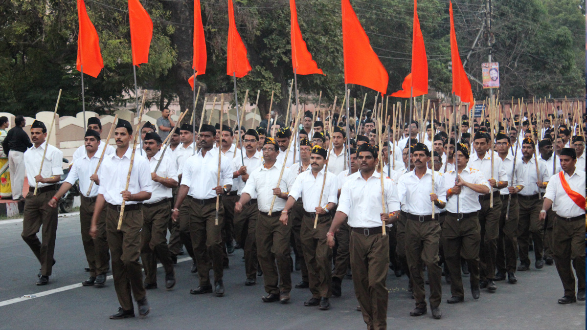 ভারতের কট্টর হিন্দুত্ববাদী সংগঠন আরএসএস সদস্যদের একটি র‍্যালি। (ফাইল ছবি)