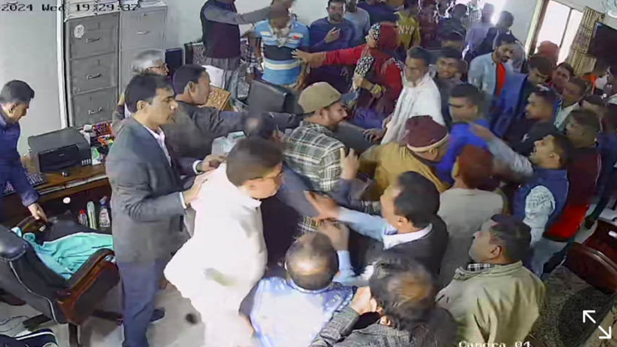 তারা আরও জানান, সভাপতি হিসেবে শহিদুর রহমানকে মেনে নেন জাফির তুহিন ও সাজ্জাদ সর্মথকরা। তবে সেলিম রেজা হাবিব সর্মথকেরা বিষয়টি মেনে নিতে পারেননি। তারা শহিদুর রহমানের নাম বাদ দিয়ে অধ্যক্ষকে নতুন করে সেলিম রেজা হাবিবের নাম পাঠানোর জন্য চাপ দেয়। এতে অধ্যক্ষ রাজি না হওয়ায় তাকে তার কক্ষে লাঞ্চিত করা হয়। খবর পেয়ে পুলিশ এসে অধ্যক্ষ আলমগীর হোসেনকে উদ্ধার করে।