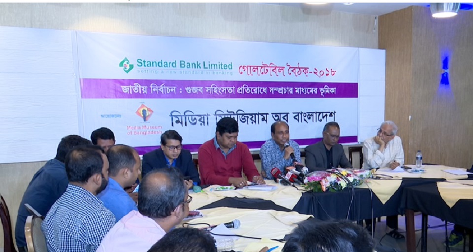 ‘জাতীয় নির্বাচন: গুজব, সহিংসতা প্রতিরোধে সম্প্রচার মাধ্যমের ভূমিকা’ শীর্ষক গোল টেবিলে মাঠপর্যায়ে কর্মরত সাংবাদিকরা অংশ নেন। গুজব ঠেকাতে, ঘটনাস্থলের সঠিক সংবাদ দ্রুত পরিবেশন করতে আইনশৃঙ্খলা বাহিনীকে আরো সক্রিয় ভুমিকা রাখার আহ্বান জানান তারা। পাশাপাশি গণমাধ্যম কর্মীদেরও আরও বেশী দায়িত্বশীলতার পরিচয় রাখার উপরও গুরুত্ব দেয়া হয়।