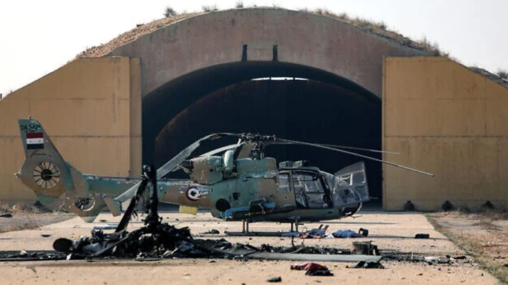 ইসরায়েলি যুদ্ধবিমানগুলো সিরিয়ার অন্তত তিনটি প্রধান সামরিক বিমানঘাঁটিতে বোমা হামলা চালিয়েছে, যেখানে অসংখ্য হেলিকপ্টার ও যুদ্ধবিমান ছিল। হামলাগুলো উত্তর-পূর্ব সিরিয়ার কামিশলি বিমানঘাঁটি, হোমসের গ্রামীণ এলাকায় অবস্থিত শিনশার ঘাঁটি এবং রাজধানী দামেস্কের দক্ষিণ-পশ্চিমে অবস্থিত আকরাবা বিমানবন্দর লক্ষ্য করে পরিচালিত হয়েছে।