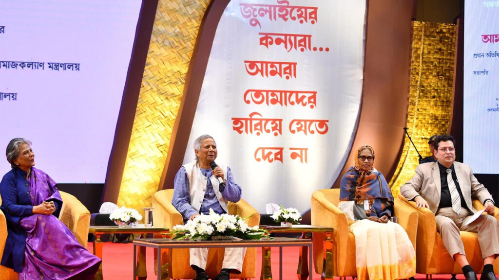 দেশ গড়ার কাজে সরকারের পাশাপাশি নারীদেরও বড় লক্ষ্য নিয়ে এগিয়ে যাওয়ার আহ্বান জানিয়েছেন অন্তর্বর্তী সরকারের প্রধান উপদেষ্টা ড. মুহাম্মদ ইউনূস। মঙ্গলবার (১০ ডিসেম্বর) রাজধানীর ওসমানী স্মৃতি মিলনায়তনে জুলাই অভ্যুত্থানে অংশ নেয়া নারীদের সঙ্গে মতিবিনিময়কালে এ আহ্বান জানান তিনি।