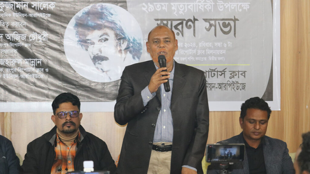 রোববার (২৯ ডিসেম্বর) রাত ৮ টায় রংপুর রিপোর্টার্স ক্লাব (আরপিআরসি) ও রংপুর সাংবাদিক ইউনিয়নের (আরপিইউজে) উদ্যোগে ক্লাব মিলনায়তনে অনুষ্ঠিত ২৯তম মৃত্যুবার্ষিকী উপলক্ষে স্মরণ সভায় সাংবাদিক নেতারা এ দাবি জানান।