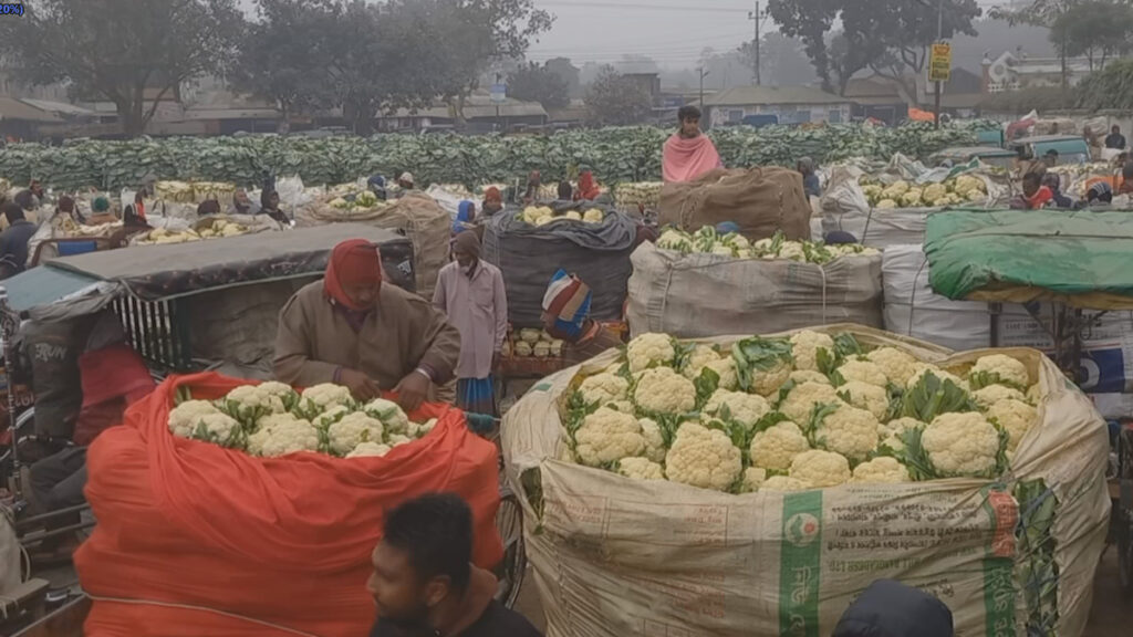 বগুড়ার মহাস্থানগড়ের পাইকারি বাজারে এক কেজি ফুলকপি মিলছে ২-৩ টাকায়। সরবরাহ বেড়ে যাওয়ায় কেজি প্রতি মূলা মিলছে ২-৩ টাকায়। আর বাঁধাকপি, শিম কিংবা শসার মতো সবজিগুলো মিলছে ১০-১৫ টাকা কেজিতে। সবধরণের সবজির দাম নিম্নমূখী হওয়ায় গ্রাহকের জন্য স্বস্তিদায়ক হলেও, কৃষকের চাষাবাদের খরচ তোলাই কঠিন হয়ে যাচ্ছে।