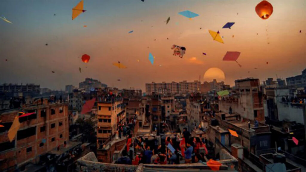 বাহারি রঙ আর নানা আকারের ঘুড়ি ওড়ানো হয় ভবনগুলোর ছাদ থেকে। পুরান ঢাকার বাসিন্দাদের পাশাপাশি রাজধানীর অন্য এলাকা থেকেও অনেকে যোগ দিয়েছেন এই সাকরাইন উৎসবে। এতে জমজমাট হয়ে ওঠে পুরান ঢাকা।