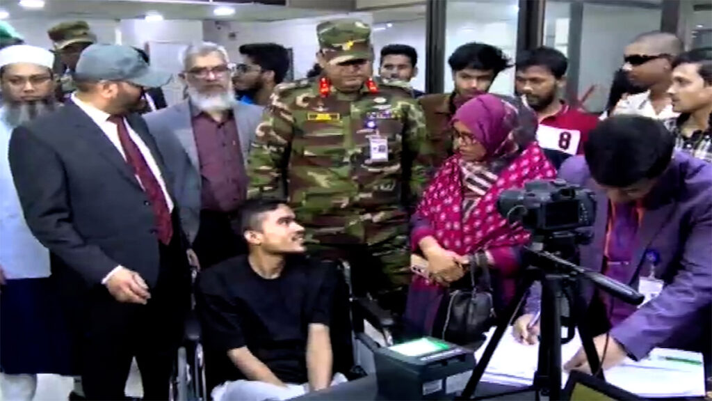 সরেজমিনে দেখা যায়, হাসপাতালের এক টেবিলে বসে ভোটার আবেদনকারীর তথ্য, ছবি তোলা, আঙ্গুলের ছাপ এবং চোখের আইরিশ দিয়ে ভোটার হওয়ার প্রক্রিয়া সম্পন্ন করছেন আহতরা। একইসঙ্গে জাতীয় পরিচয়পত্র সংশোধনেরও সুযোগ পাচ্ছেন। আহতদের পাশাপাশি তাদের পরিবারের সদস্যরাও পাচ্ছেন বিশেষ এ সুবিধা।
