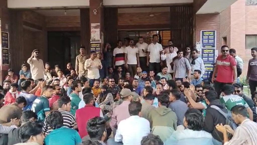 মিছিলটি প্রধান সড়ক হয়ে প্রশাসনিক ভবনের সাথে এসে অবস্থান কর্মসূচি শুরু করেন। এ সময় শিক্ষার্থীদের নানা স্লোগান দিতে দেখা যায়।