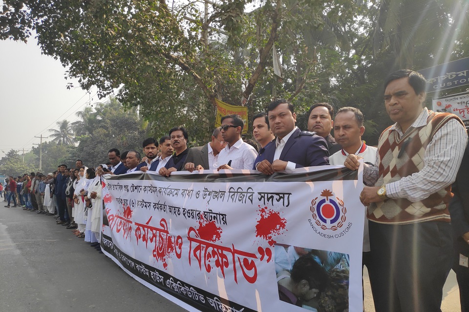 কাস্টমস কর্মকর্তা আহত হওয়ার প্রতিবাদে বেনাপোলে মানব বন্ধন