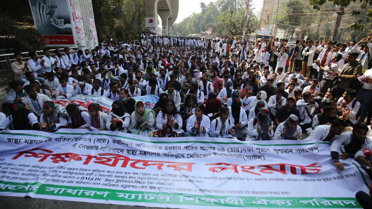 সাত কার্যদিবসের মধ্যে দাবি বাস্তবায়ন না হওয়ায় শাহবাগ মোড়ে বিক্ষোভ করছে মেডিকেল অ্যাসিস্ট্যান্ট ট্রেনিং স্কুলের (ম্যাটস) শিক্ষার্থীরা। রোববার (৯ ফেব্রুয়ারি) সকালে রাজধানীর বিভিন্ন জায়গা থেকে শাহবাগে জড়ো হন শিক্ষার্থীরা।