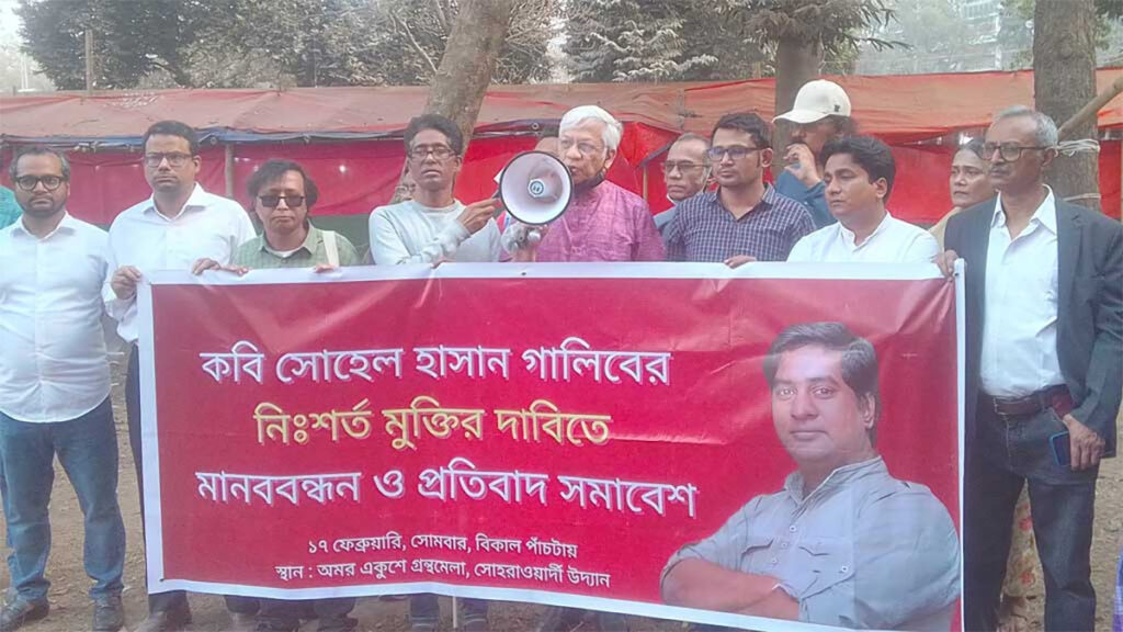 ৭২ ঘণ্টার মধ্যে কবি সোহেল হাসান গালিবের মুক্তির দাবি জানিয়েছেন একদল লেখক, প্রকাশক ও সংস্কৃতিকর্মীরা।