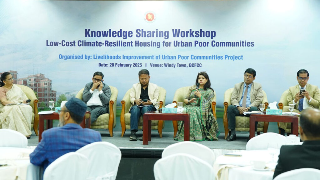অনুষ্ঠিত হলো নিম্ন-খরচে জলবায়ু সহনশীল আবাসন বিষয়ক অভিজ্ঞতা বিনিময় কর্মশালা। বৃহস্পতিবার (২০ ফেব্রুয়ারি) বঙ্গবন্ধু আন্তর্জাতিক সম্মেলন কেন্দ্রে লাইভলিহুড ইমপ্রুভমেন্ট অব আরবান পুওর কমিউনিটিজ প্রকল্পের আওতায এই কর্মশালা অনুষ্ঠিত হয়।