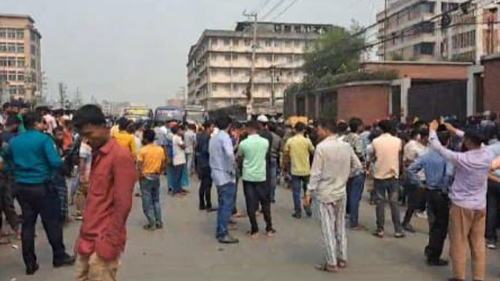 কারখানা কর্তৃপক্ষ জানায়, পূর্বে যেসব শ্রমিকরা অন্য শ্রমিকদের হামলা করেছে ও কারখানা ভাঙচুর চালিয়েছে তাদেরকেই ছাঁটাই করার সিদ্ধান্ত নেয়া হয়েছে। এসবের প্রতিবাদে সাড়ে ১১টা থেকে দুপুর দেড়টা অবদি শ্রমিকরা ঢাকা-ময়মনসিংহ অবরোধ করে রাখে। খবর পেয়ে ঘটনাস্থল পরিদর্শন করেন যৌথবাহিনীর সদস্যরা। পরে শ্রমিকদের বুঝানোর চেষ্টা করে ব্যার্থ হন আইনশৃঙ্খলা বাহিনীর সদস্যরা। এক পর্যায়ে শ্রমিকদের ধাওয়া দিয়ে সরিয়ে দিলে সড়কে যান চলাচল স্বাভাবিক হয়।