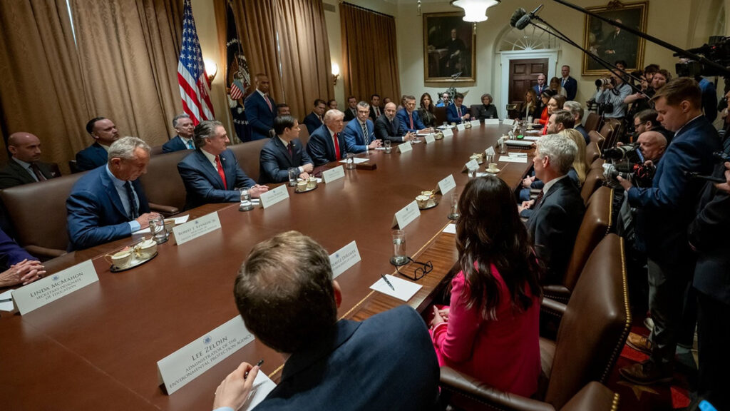 বুধবার (২৬ ফেব্রুয়ারি) নতুন মন্ত্রিসভার সঙ্গে বৈঠকে বসেন ট্রাম্প। তার ক্ষমতা গ্রহণের পর নবগঠিত সরকারি কর্মদক্ষতা দফতরের (ডিওজিই) দায়িত্ব পান ধনকুবের ইলন মাস্ক।