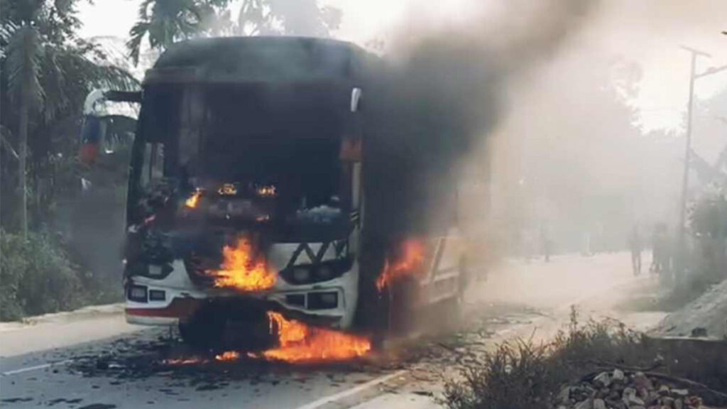 ফায়ার সার্ভিস ও স্থানীয়রা জানান, রোববার সকালে ময়মনসিংহ থেকে ছেড়ে আসা রাজিব পরিবহনের একটি বাস জামালপুরের দিকে যাচ্ছিল। পথিমধ্যে শরিফপুর এলাকায় পৌঁছালে বিপরীত দিক থেকে আসা একটি অটোরিকশার সাথে বাসটির সংঘর্ষ হয়। এতে অটোরিকশার চারজন যাত্রী আহত হন। পরে তাদের উদ্ধার করে হাসপাতালে নেয়া হলে সেখানে চিকিৎসাধীন অবস্থায় একজনের মৃত্যু হয়। এ সময় বিক্ষুব্দ জনতা বাসটিতে আগুন ধরিয়ে দেয়। এরপর ফায়ার সার্ভিস ঘটনাস্থলে গিয়ে আগুন নিয়ন্ত্রণে আনে।