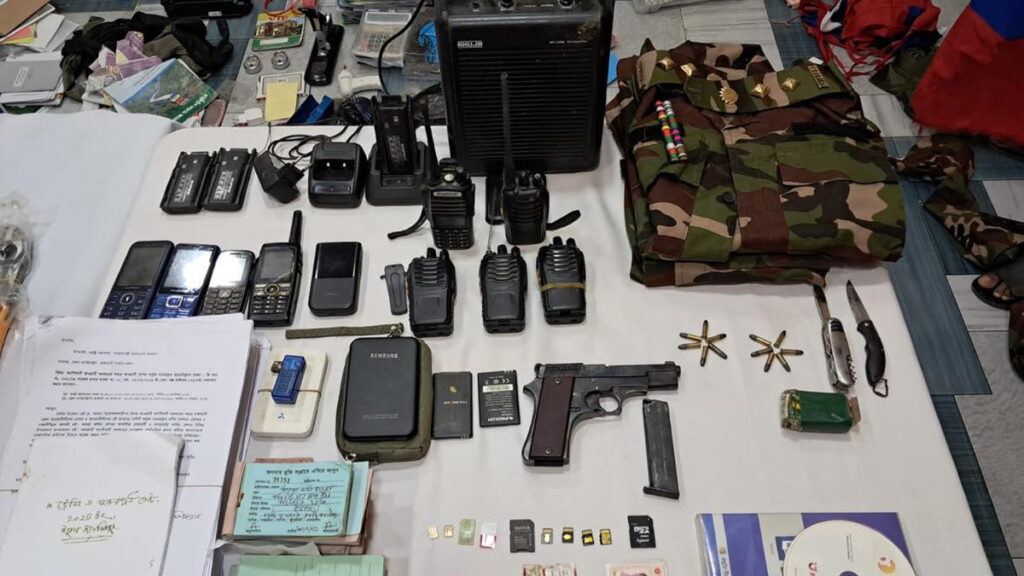 এ সময় সেনাবাহিনীর উপস্থিতি টের পেয়ে সন্ত্রাসীরা দ্রুত পালিয়ে যায়। পরবর্তীতে আস্তানায় তল্লাশি চালিয়ে ১৭ রাউন্ড পিস্তলের গুলি, একটি বাইনোকুলার, একটি ওয়াকিটকি সেট, একটি হার্ডডিস্ক, সন্ত্রাসীদের ইউনিফর্ম ও চাঁদা আদায়ের রশিদসহ বিভিন্ন সরঞ্জাম উদ্ধার করা হয়।
