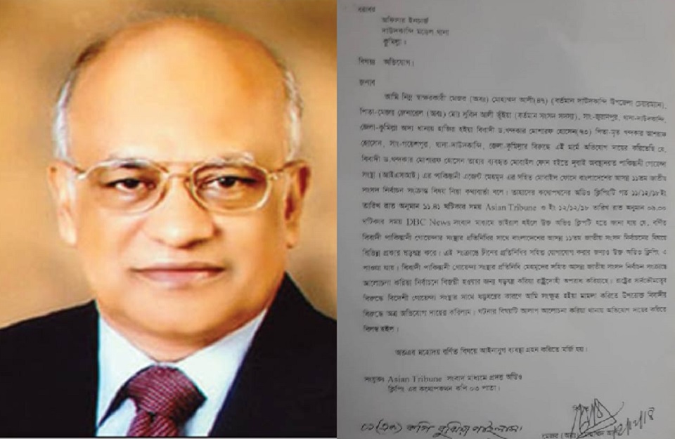 বিএনপির স্থায়ী কমিটির সদস্য ড. খন্দকার মোশাররফের সাথে আইএসআই এজেন্ট মেহমুদের ফোনালাপকে নির্বাচন বিরোধী ষড়যন্ত্র উল্লেখ করে দাউদকান্দি থানায় রাষ্ট্রদ্রোহিতার অভিযোগ করেছেন দাউদকান্দি উপজেলা চেয়ারম্যান মেজর (অব.) মোহাম্মদ আলী সুমন।