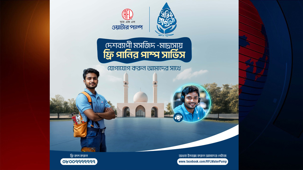 রমজান মাসে মসজিদ ও মাদ্রাসায় নিরবিচ্ছিন্ন পানি সরবরাহ নিশ্চিত করতে আরএফএল ওয়াটার পাম্প নিয়ে এসেছে বিশেষ ক্যাম্পেইন ‘স্বস্তির প্রার্থনা’। এই ক্যাম্পেইনের আওতায় সারাদেশের মসজিদ মাদরাসাগুলোতে বিনামূল্যে পাম্প সার্ভিস প্রদান করবে প্রতিষ্ঠানটি।