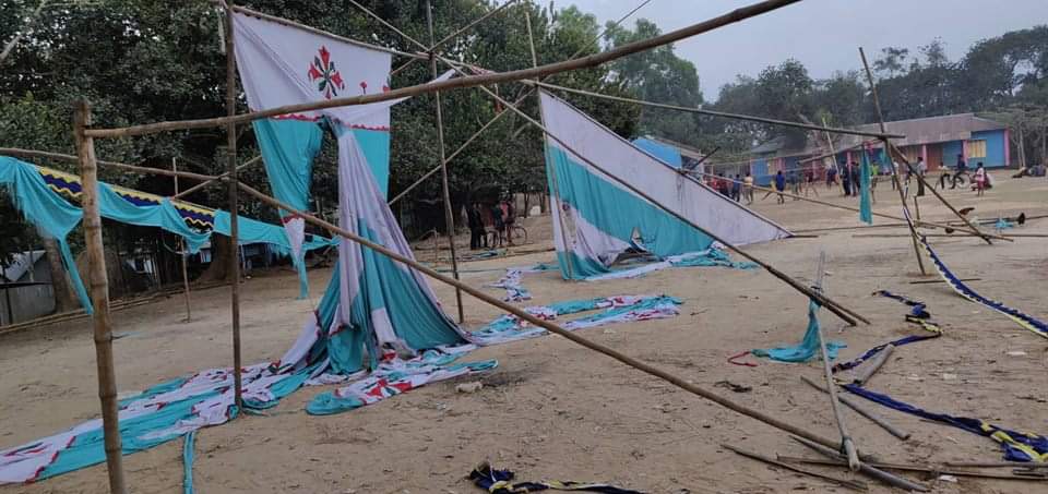 ব্রাহ্মণবাড়িয়া বিজয়নগর উপজেলায় বিএনপির গণসংযোগ প্যান্ডেল ভাঙচুর করে কাপড়ে আগুন ধরিয়ে দেয়ার অভিযোগ পাওয়া গেছে। বৃহস্পতিবার বেলা পৌঁনে তিনটার দিকে উপজেলার বিষ্ণুপুর ইউনিয়নে এই ঘটনা ঘটে।