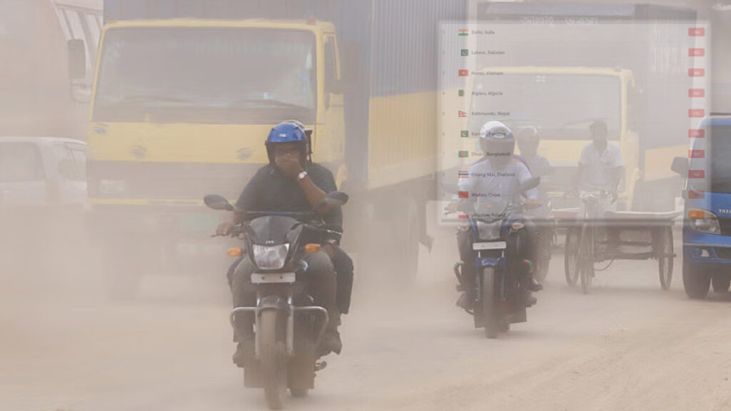 সংস্থাটি জানায়, ১৯৪ স্কোর নিয়ে বায়ু দূষণের তালিকার শীর্ষে অবস্থান করছে ভারতের দিল্লি। সেখানকার বাতাসের মান ‘অস্বাস্থ্যকর’। দ্বিতীয় স্থানে রয়েছে পাকিস্তানের লাহোর শহর। তাদের স্কোর ১৯২, অর্থাৎ সেখানকার বাতাসও বসবাসকারীদের জন্য ‘অস্বাস্থ্যকর’।