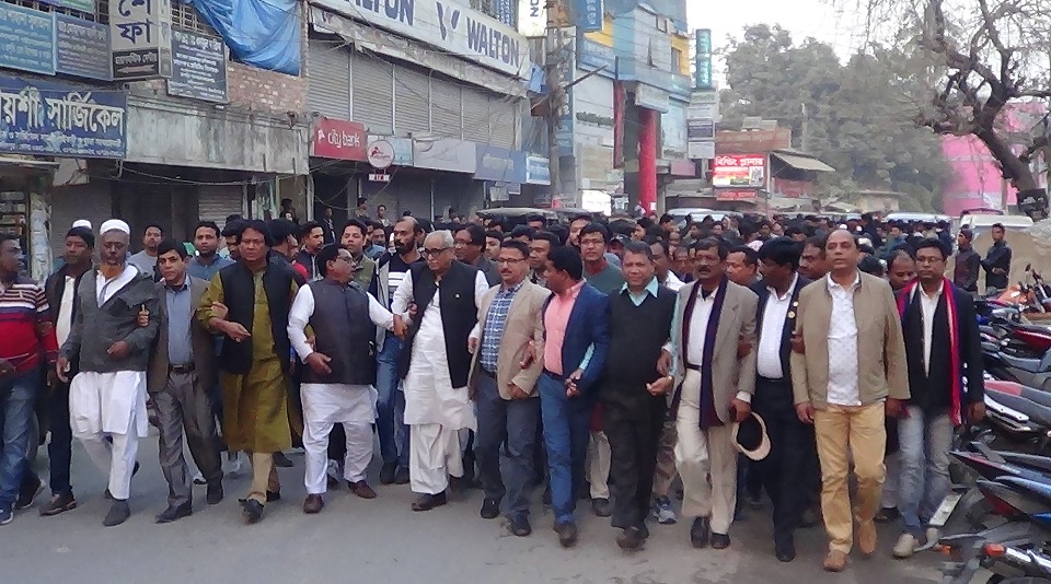 ফরিদপুরে নিজ দলের কর্মী ইউসুফ আল মামুন নিহতের ঘটনার প্রতিবাদে ও দোষীদের দৃষ্টান্তমূলক শাস্তির দাবিতে প্রতিবাদ সভা ও বিক্ষোভ মিছিল করেছে কোতয়ালী আওয়ামী লীগ।