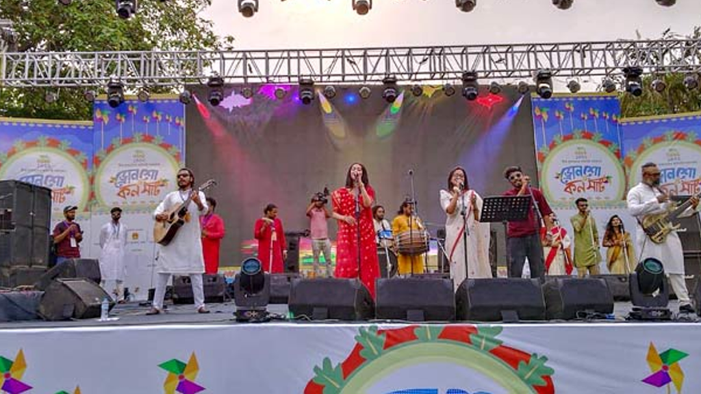 আজ সোমবার (১৪ এপ্রিল) শুরুতে বান্দরবানের ক্ষুদ্র জাতিগোষ্ঠীর গানের দল বেসিক গিটার লার্নিং স্কুলের খুদে শিল্পীদের পরিবেশনার মাধ্যমে আয়োজন শুরু হয়।