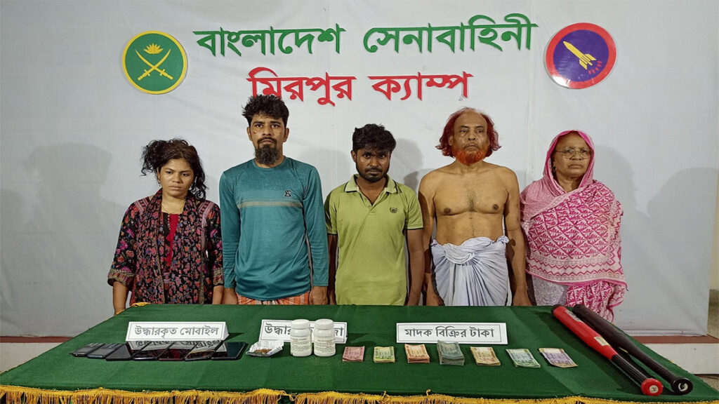 জানা যায়, সেনাবাহিনীর একটি ইউনিট ও পল্লবী থানা পুলিশের সমন্বয়ে মিরপুর কালশী সংলগ্ন এলাকায় এ অভিযান পরিচালিত হয়। এ সময় অভিযুক্ত মাদক ব্যবসায়ী শাহিনুর, রাশিদাসহ ৫ জনকে হাতেনাতে আটক করা হয়। ঘটনাস্থল থেকে মাদক, মাদক বিক্রির টাকা, একাধিক মোবাইল ও মাদক সেবনের সরঞ্জামাদি উদ্ধার করা হয়।