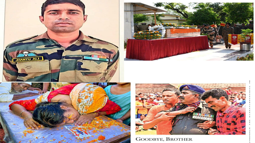 ঝন্টুর নিথর দেহ কফিনবন্দি হয়ে যখন গ্রামের বাড়ি তেহট্টে পৌঁছায়, তখন চোখের জলে তাকে শেষ শ্রদ্ধা ও বিদায় জানান আপনজন, আত্মীয়, বন্ধু, প্রতিবেশীরা। পূর্ণ মর্যাদায় তাকে শ্রদ্ধাজ্ঞাপন করে ভারতীয় সেনা। আমজনতা স্লোগান তোলে, ‘হিন্দুস্তান জিন্দাবাদ’!