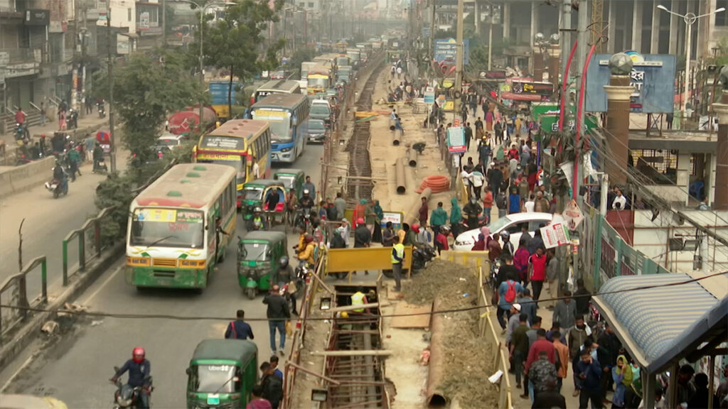 অনিয়ন্ত্রিত যানবাহন, যানজট আর মেট্রোরেলের নির্মাণ কাজে নাকাল ঢাকার প্রগতি সরণি। এমআরটি-১ বা মেট্রোরেলের বিমানবন্দর থেকে কমলাপুর রুটের লাইন যাবে এই সড়কের মাটির নিচ দিয়ে। তাই-ই দীর্ঘদিন ধরে সড়কের দু’পাশে ইউটিলিটি লাইন স্থানান্তরের কাজ চলছে। ফলে যানজটে ভোগান্তি স্বাভাবিকের চেয়ে আরও বেড়েছে। মেট্রোর মূল কাজ শুরু হলে প্রগতি সরণিতে যানজটের ভোগান্তি আরও বাড়বে বলছে স্থানীয়রা।