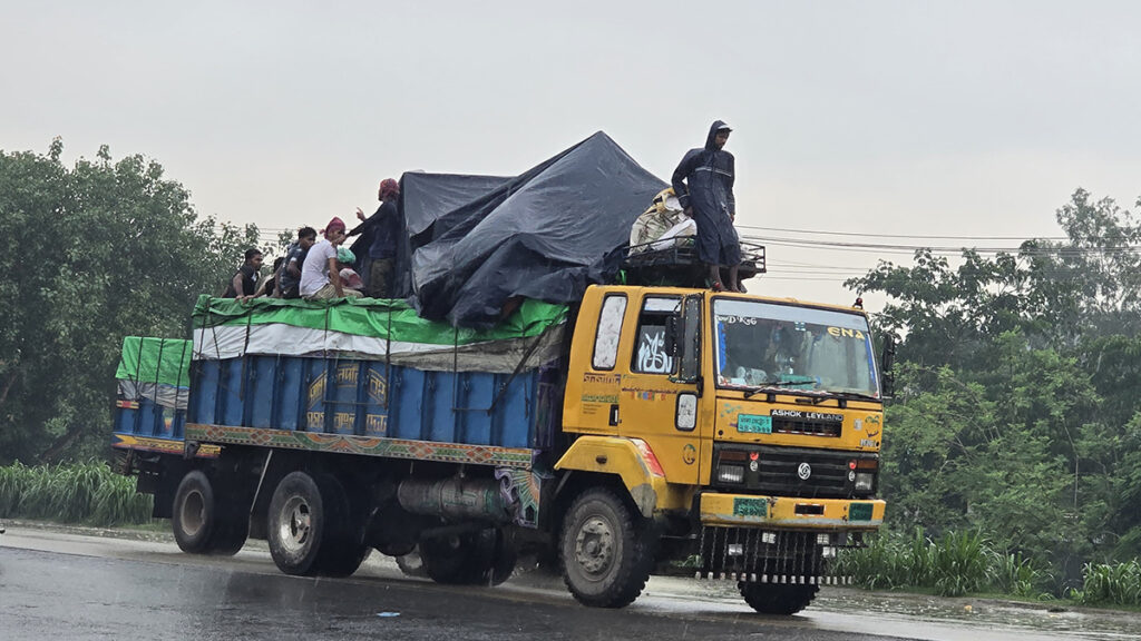 মামুন নামে আরেকজন বলেন, স্ত্রী ও বাচ্চা নিয়ে খোলা পিকআপে বাড়িতে যাচ্ছি। এরমধ্যেই বৃষ্টি এসেছে। কিছু করার নেই। মাথার ওপরে কাগজ দিয়ে বাড়ি যাচ্ছি।