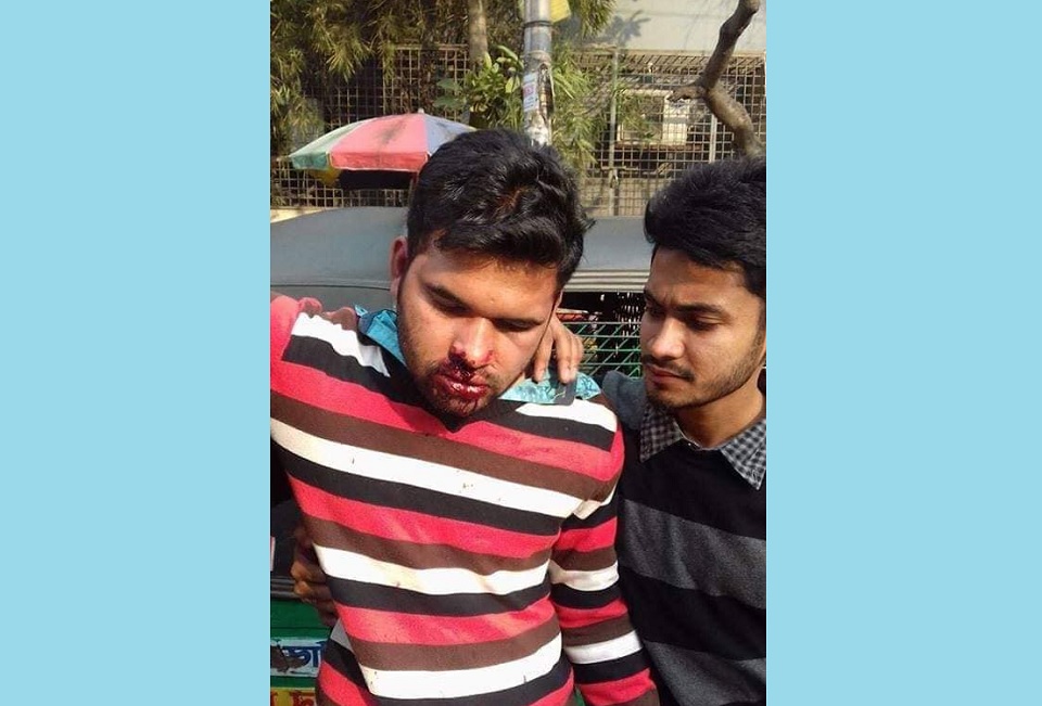 মারধরের শিকার হন ‘বাংলাদেশ ছাত্র অধিকার সংরক্ষণ পরিষদে’র যুগ্ম আহ্বায়ক মোল্লা বিন ইয়ামিন, জসিম উদ্দিন আকাশ, সোহরাব হোসেনসহ দশ-বারোজন। মারধরকারী ছাত্রলীগের নেতা-কর্মীরা বিশ্ববিদ্যালয়ের বিভিন্ন হলের নেতা-কর্মী বলে অভিযোগ করেছেন ভুক্তভোগীরা।