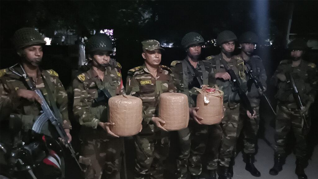 কুড়িগ্রাম সেনা ক্যাম্প সূত্রে জানা গেছে, রংপুর এরিয়ার ৭২ পদাতিক ব্রিগেড এর ২২ বীর কর্তৃক সেনা অভিযানে এক মণ গাঁজা ও একটি ডিসকভার মোটরসাইকেল উদ্ধার করে সেনাবাহিনী। পরে ধাওয়া দিলে কৌশলে মাদক কারবারি পালিয়ে যায়।