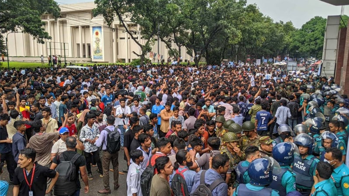 তবে, তারা সচিবালয়ে ঢুকলে তাদের ওপর চড়াও হন পুলিশ ও সেনা সদস্যরা। শিক্ষার্থীদেরকে ছত্রভঙ্গ করে দিতে লাঠি পেটা, সাউন্ড গ্রেনেড ও টিয়ারশেল নিক্ষেপ করতে দেখা গেছে। তাতে কয়েকজন শিক্ষার্থী আহত হন।
