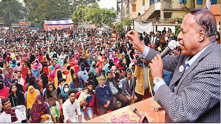 জনসভা উপলক্ষে তারিণী বামা উচ্চবিদ্যালয় মাঠে দুপুরের পর থেকেই জনতার ঢল নামে। ঢাকঢোল বাজিয়ে মটরগাড়ি প্রতীক আর ফেস্টুনে ফেস্টুনে ভরে যায় গোটা এলাকা। আসতে থাকে একের পর এক মিছিল। বিকালের আগেই হাজার হাজার মানুষের উপস্থিতিতে স্কুল মাঠটি কানায় কানায় পূর্ণ হয়ে যায়। উপস্থিত জনতা স্লোগান দিতে থাকে, উন্নয়নের মার্কা কি? মটরগাড়ি, মটরগাড়ি। সালমা ইসলামের মার্কা কী? মটরগাড়ি, মটরগাড়ি। মুখরিত হয়ে ওঠে স্কুল মাঠসহ আশপাশের এলাকা।